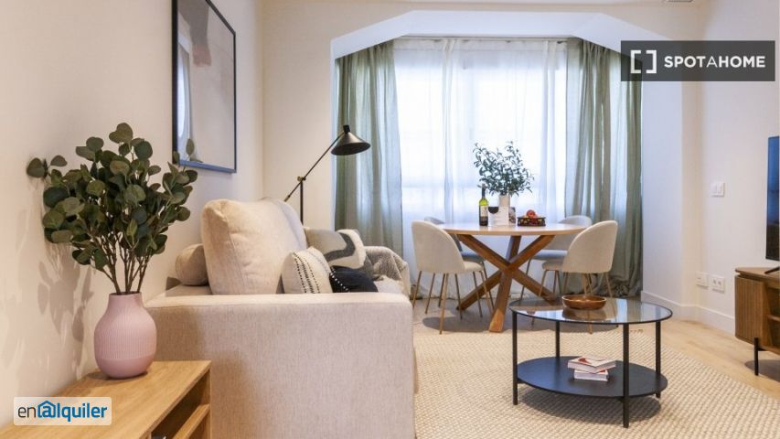 Descubra un espacioso y amueblado apartamento de 2 dormitorios en alquiler en la cotizada zona de Nueva España, Madrid. Este apartamento está totalmente equipado con aire acondicionado y calefacción central, lo que garantiza comodidad durante todo el año. Cuenta con una cocina equipada con lavavajillas y horno, y una lavadora común disponible para su comodidad. No se admiten mascotas ni fumar. Spotahome ha revisado y verificado personalmente este alojamiento. Nueva España es un barrio vibrante de Madrid, famoso por su accesibilidad y servicios. Entre los puntos de interés cercanos se incluyen el Monumento a Calvo Sotelo, la Parroquia de San Fernando y la Plaza de Cuzco. Además, encontrará supermercados como Supermercados la Frutería y numerosos restaurantes mediterráneos como el Restaurante Saffron-Mediterranean Food y el Hórreo Asturiano.