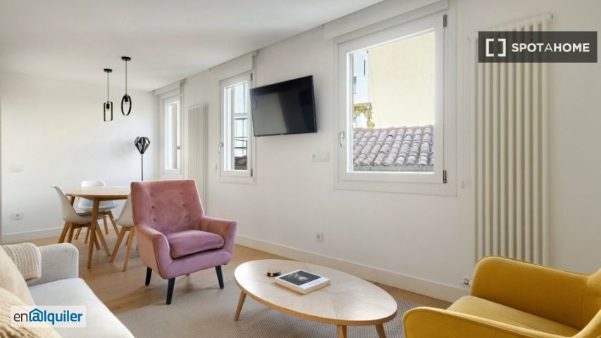 Este apartamento de 3 dormitorios en Cortes, Madrid, está en alquiler. Está completamente amueblado e incluye aire acondicionado individual, cocina equipada con lavavajillas y horno, secadora y otras comodidades modernas. Además, cuenta con la comodidad del aparcamiento y la seguridad de haber sido revisado personalmente por Spotahome. Disfrute de comodidad y fiabilidad garantizadas con todos los gastos incluidos, incluyendo luz, agua, gas y wifi. Situado en el vibrante barrio de Cortes, este apartamento le ofrece acceso privilegiado a varios puntos de interés. Entre las atracciones más destacadas de la zona se incluyen la Calle de León y el Ateneo de Madrid. La Plaza del Ángel y la Estatua de Miguel de Cervantes también se encuentran a poca distancia a pie. Podrá explorar lugares de interés cultural y artístico, creando experiencias enriquecedoras a poca distancia. ¡encuentre aquí su experiencia de alquiler excepcional!