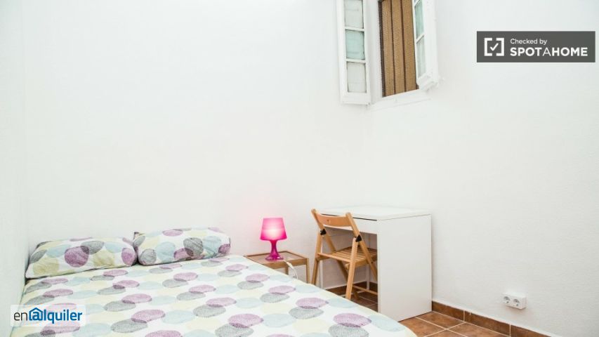 Esta cómoda habitación está disponible en un apartamento compartido de 3 habitaciones en el Raval, Barcelona. El apartamento está completamente amueblado y cuenta con comodidades esenciales como lavadora y cocina equipada. La propiedad ha sido verificada por un homechecker de Spotahome, lo que garantiza su fiabilidad y calidad. El Raval es conocido por su vibrante escena cultural y está convenientemente ubicado cerca de numerosas atracciones turísticas. Lugares emblemáticos como el Mont Juic, el Palacio Güell y las Calles de la Diversidad están a pocos metros, lo que ofrece numerosas oportunidades para explorar y disfrutar del ambiente local.