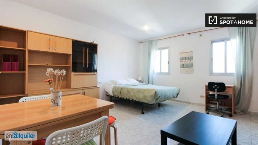 El estudio de manchas solares _porque estás buscando luz_ ¿me gustará aquí? Tal vez. ¿estás buscando un lugar sencillo pero soleado en el centro de Barcelona? No busques más. Este lugar es para ti. ¿de Verdad? Dime más Tendrás todo lo esencial en este bonito estudio. Con una amplia sala de estar, mucha luz natural y una excelente ubicación en el corazón del centro de la ciudad, esta casa es tan práctica como parece. Creemos que esta es una casa ideal para cualquiera que busque un lugar sin sentido en el centro de la ciudad. Sus 3 razones principales para vivir aquí: - Siéntete soleado: esta casa es súper luminosa. - Tome un tren al otro lado de la ciudad: hay una estación de metro cerca. - Explore el centro de la ciudad: lo mejor de Barcelona está justo afuera de su puerta. Pero necesitas saber esto - el apartamento está en el sexto piso de un edificio sin ascensor, ¿pero al menos podrás hacer un excelente ejercicio diario? Su inspector de viviendas, Albert, dijo: _ "me encanta esta propiedad. Está justo en el centro de la ciudad. ”_ Ayúdame a decidir Este es un bonito apartamento en el sexto piso, en la calle d'estruc, Barcelona. Es simple, pero la ubicación es increíble: es la base de operaciones perfecta en la ciudad. Es perfecto para cualquiera que busque una excelente ubicación y todo lo esencial.