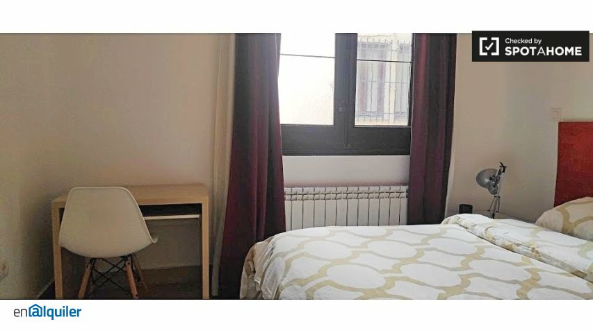 ¿buscas una experiencia de vivienda compartida en Madrid? Descubre esta acogedora habitación en un apartamento compartido de 4 habitaciones, ubicado en el vibrante barrio de Embajadores. El apartamento está completamente amueblado y ofrece cocina equipada, lavadora y calefacción central. Se admiten fumadores. Embajadores es una zona dinámica de Madrid, con una gran variedad de importantes atracciones turísticas en las inmediaciones. Puedes explorar el Palacio de Viana, el Convento de la Latina y la Plaza Tirso de Molina, todos a poca distancia a pie. Sumérgete en el patrimonio cultural de Madrid desde la puerta de casa.