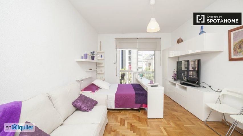 La casa que lo tiene todo _porque incluso los estudios deberían tenerlo todo_ ¿me gustará aquí? Depende ¿estás buscando un estudio elegante con todo lo esencial? No busques más. Echa un vistazo a este fabuloso lugar. ¿de Verdad? Dime más Tendrás todos los lujos de un apartamento más grande en este elegante estudio. Con muebles modernos, un hermoso balcón para disfrutar en los días cálidos y una cocina completa para usar, este estudio realmente lo tiene todo. Creemos que esta es una almohadilla perfecta para cualquiera que no quiera comprometerse con lo esencial. Sus 3 razones principales para vivir aquí: - Toma aire fresco en el balcón - felicidad. - Tome un tren al otro lado de la ciudad: hay una estación de metro cerca. - Explora el vecindario: vivirás en la moderna Gràcia. Guay. Pero necesitas saber esto - el apartamento no tiene aire acondicionado: tendrá que encontrar otra forma de mantenerse fresco en verano. Ayúdame a decidir Este es un moderno estudio en el 4 ° piso en la calle de Padilla, Barcelona. Es elegante, tiene un bonito balcón y tiene todos los electrodomésticos esenciales, ¡qué hallazgo raro! Es perfecto para profesionales, estudiantes o parejas.