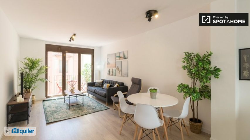 Este espacioso apartamento de 3 habitaciones en el Raval, Barcelona, está amueblado con estilo y es perfecto para quienes buscan comodidad y servicios. El apartamento está equipado con aire acondicionado central, cocina totalmente equipada con horno y lavavajillas, y balcón para disfrutar al aire libre. Con wifi incluido, los residentes pueden mantenerse conectados fácilmente. La propiedad ha sido verificada personalmente por un homechecker de Spotahome, lo que garantiza su calidad y fiabilidad. El Raval es un barrio vibrante de Barcelona, rico en cultura y atracciones, que ofrece comodidad sin renunciar a nada. Cerca, encontrará restaurantes como Bangla Spice y l'estrella del Nord, así como importantes lugares turísticos como la Casa de la Generalitat y el Monumento a Santa Eulalia. La zona es dinámica y diversa, perfecta para quienes buscan explorar Barcelona desde una perspectiva auténtica.