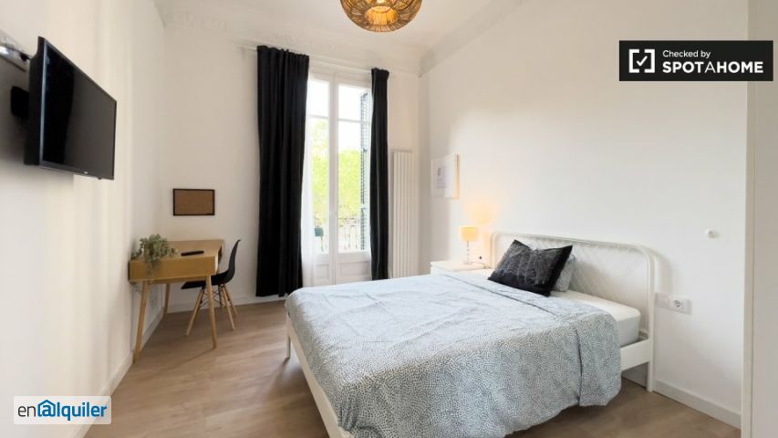 Se alquilan habitaciones en piso amueblado de 7 habitaciones en Gran Via de Les Corts Catalanes. La propiedad está en el segundo piso de un edificio con ascensor. La propiedad incluye balcón. ¿me gustará aquí? Sería difícil no hacerlo. ¿busca un apartamento bellamente renovado en el centro de la ciudad? Has ganado el premio gordo. ¿en realidad? Dime más · te encantará tu hermoso dormitorio nuevo. Cada habitación aquí es espaciosa, elegantemente decorada, completamente amueblada (aquí tienes todo lo que necesitas) y tiene un televisor con Netflix incluido, el lugar perfecto para relajarte. ¡casi todas las habitaciones tienen su propio balcón, lo que deja entrar mucha luz natural! Tomando un café en su propio balcón, no hay mejor manera de comenzar el día. También disfrutarás de los suelos de madera, los techos altos, los tres baños para evitar colas o retrasos y la estación de scooters en la entrada. Creemos que es ideal para estudiantes o profesionales extrovertidos que buscan un área exclusiva con mucho que ver y hacer. En casa tendrás una habitación amueblada en un elegante apartamento, todo ello en una ubicación fascinante. Tus 3 razones principales para vivir aquí: · Las habitaciones bien amuebladas son elegantes y espaciosas. · Los balcones, por supuesto. Los balcones privados también ofrecen asientos al aire libre. · la Plaza Universitat está a 5 minutos a pie. Vale la pena. Ayúdame a decidirme Este es un apartamento de 145m2 de 7 dormitorios en el segundo piso en el centro de la ciudad de Barcelona. Cuenta con un interior bellamente renovado, con techos altos, habitaciones soleadas y elegantes. La cocina está totalmente equipada con nevera, congelador, microondas, lavadora, horno e incluso un rincón café. Las puertas de todas las habitaciones tienen llave, por lo que tendrás mayor seguridad y privacidad. Vivirás en el Eixample, el barrio más céntrico y animado con parques, tiendas y muchos restaurantes cerca, además de excelentes conexiones de transporte público. Estas calles están llenas de historia y oportunidades de compras y hay una estación de Metro a una calle del apartamento. También es perfecto para estudiantes, ya que la Universidad de Barcelona está a un corto paseo. No hay lugares mucho mejores que este.