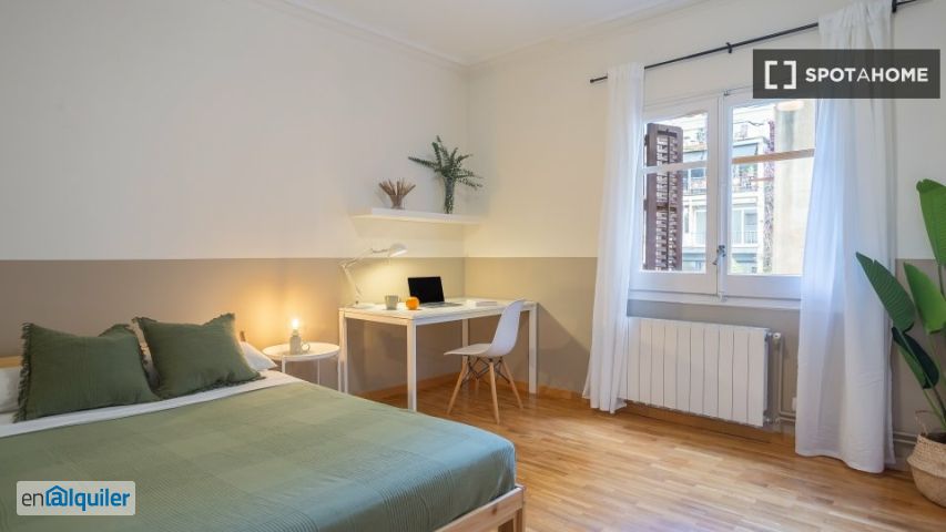 Habitaciones en alquiler en piso amueblado de 6 habitaciones en Carrer de Teodora Lamadrid Este amplio piso reformado en Sant Gervasi combina detalles de época con luminosidad y suelos de parquet natural. Conectado con el centro mediante tren y autobús, y cerca de supermercados, Mercat de Sant Gervasi, clubes deportivos, cines y restaurantes. Totalmente equipado con muebles de diseño, Wifi de alta velocidad (1000mb s), tv 4k, cafetera, lavadora y cerradura en todas las estancias. Dispone de 6 amplias habitaciones (todas con cerradura, ventilador de techo, cómoda cama, escritorio, espejo, la mayoría con amplios armarios) y 2 amplios baños completos. La propiedad se encuentra en la 2ª planta de un edificio con ascensor. La propiedad incluye aire acondicionado en el salón. Incluye servicios como limpieza semanal, suministro semanal de productos básicos del hogar como jabón de manos y lavavajillas, productos de limpieza, bolsas de basura, papel de cocina y wc, mantenimiento, acceso a eventos, descuentos en marcas locales y asistencia 24h. El precio incluye gastos de comunidad, impuestos y ofrecemos como servicio extra ayuda con visado, nie, empadronamiento y más. La zona está rodeada de restaurantes y supermercados, al lado del Mercat de Sant Gervasi, cines y varios clubes deportivos y de tenis. Además, a 20 minutos andando tendrás acceso a la montaña de Collserola para pasear, correr o simplemente disfrutar de las vistas y del buen tiempo de la ciudad.