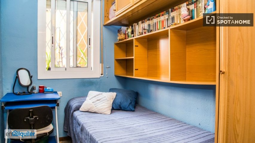 Dos acogedoras habitaciones están disponibles para alquilar en este apartamento en el barrio de Horta Guinardó de Barcelona. Los inquilinos se sentirán como en casa en este apartamento tranquilo y cómodo, que se comparte con la casera. Cuenta con una amplia sala de estar y cocina totalmente equipada con un horno y lavadora. El cuarto de baño sólo es compartida por los dos inquilinos, y todos los servicios públicos, Wi-Fi, y un servicio de limpieza están incluidos en el alquiler. Situado en la calle de Lepant, el apartamento ofrece fácil acceso a algunos de los más bellos espacios verdes de Barcelona. El famoso Parque Güell y expansivo parque del Guinardó son ambos a sólo 15 minutos a pie del apartamento. Hospital de la Santa Cruz y San Pau, con sus bellos jardines, también está muy cerca, haciendo de esta una gran opción para los empleados del hospital.