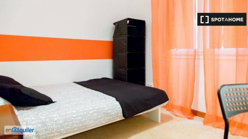 Hay acogedoras habitaciones, todas con camas dobles, disponibles para alquilar a mujeres solo en un encantador piso de 6 habitaciones en el Eixample. La propiedad tiene una amplia sala de estar, donde podrá relajarse en el hermoso sofá verde, o disfrutar de una comida con compañeros de piso en la enorme mesa de comedor. La gran cocina tiene todo lo esencial, incluido un horno, una estufa de 4 quemadores, un microondas, una lavadora de carga superior y todo el espacio de almacenamiento que pueda desear. Hay 2 baños completos en el apartamento, ambos con duchas grandes. Aquí, en l'esquerra de l'eixample, vivirás en el auténtico corazón de Barcelona. El apartamento está a pocos pasos de la Universitat de Barcelona,? Así como de varios museos. Alrededor del vecindario, también encontrará muchas tiendas, restaurantes, cafeterías, bares y pequeños parques para disfrutar.