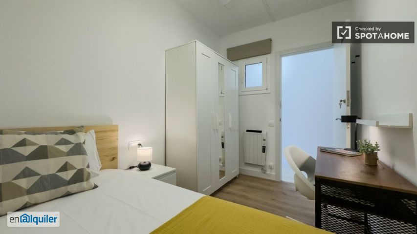 Se alquilan habitaciones en piso amueblado de 9 habitaciones en la c Del Rosselló. La propiedad está en el quinto piso de un edificio con ascensor. La propiedad incluye lavadora.