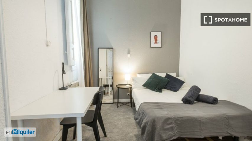 El edificio se encuentra en pleno centro de Madrid, a solo unos minutos a pie de Sol y Tirso de Molina. El apartamento presenta un diseño moderno con amplias habitaciones y una cocina excelente. El alquiler incluye todos los gastos, incluyendo facturas, internet, limpieza semanal y mucho más. Planta: 4. ª