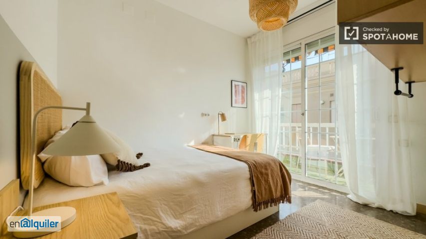 Se alquilan habitaciones en piso compartido de 4 habitaciones en Barcelona. La propiedad incluye balcón, aire acondicionado y lavadora. La propiedad está ubicada en un edificio con ascensor.