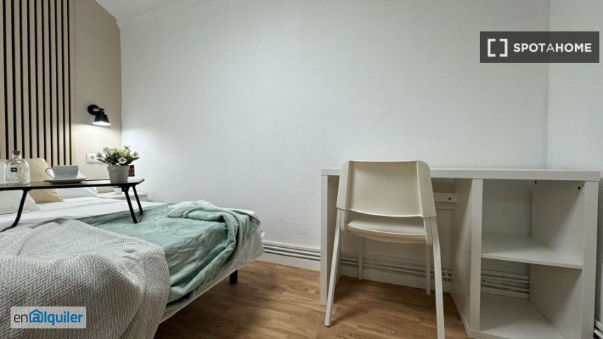 Este encantador piso compartido en Vinateros ofrece un espacio cómodo para sus inquilinos. Está completamente amueblado y cuenta con calefacción central. También dispone de ascensor y la cocina está bien equipada con horno y lavadora. Incluye wifi para mayor comodidad. La verificación profesional de Spotahome ha garantizado la fiabilidad de este anuncio. El piso se encuentra en Vinateros, Moratalaz, Madrid. Cerca, el Carrefour Market Moratalaz ofrece una gran variedad de tiendas. Para comer, Azul y Oro y Pastelería Serramonte son excelentes opciones. El Oso y Madroño y el Edificio Carrión son atracciones destacadas en los alrededores.