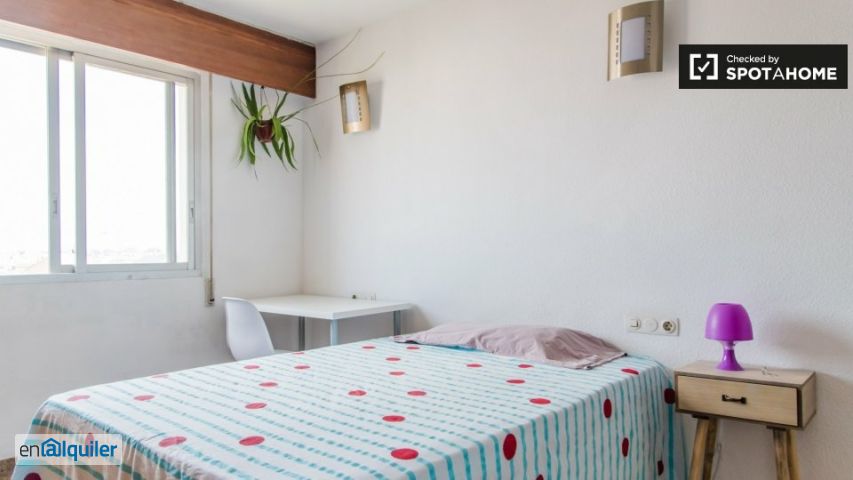 La vista central _porque estás en el piso 11_ ¿me gustará aquí? Sí. En lo alto, tienes excelentes vistas de la ciudad y recibes mucho sol de Valencia. ¿de Verdad? Dime más le encantará el hecho de que hay habitaciones individuales y dobles para elegir, así como 3 baños completos. Creemos que el apartamento es perfecto para estudiantes o profesionales que desean vivir cerca del centro de la ciudad. Sus 3 razones principales para vivir aquí: - Dormitorio 5 tiene un baño privado. - Todo el apartamento recibe mucha luz natural. - te encantará explorar tu animado barrio. Pero necesitas saber esto - Solo se permite fumar fuera de las ventanas. - Puedes traer a tus mascotas contigo. Recuerda incluirlos en tu solicitud de reserva. Tu verificador de casa, Damian, dijo: _ "la vista es realmente agradable porque estamos en el piso 11". _ Ayúdame a decidirme Este es un piso 11, apartamento de 5 dormitorios en la Av. Del Dr. Waksman, Valencia. Es perfecto para