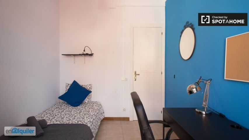 Preciosas habitaciones para alquilar en un espacioso apartamento de 4 dormitorios con 2 baños y balcones en el concurrido barrio de el Poble-Sec. Cada una de las habitaciones tiene un balcón para disfrutar de mucha luz y el gran ambiente de Barcelona. Hay una amplia cocina compartida con horno eléctrico, vitrocerámica y microondas para cocinar comidas, además de una televisión y mesa de comedor donde se puede socializar con sus nuevos compañeros de piso. El apartamento tiene dos baños, ambos con cabina de ducha. El apartamento está a sólo 4 minutos a pie de la gran avenida del Paral-Lel llena de tiendas, bancos, restaurantes y paradas de metro. Aún más cerca hay una gran variedad de bares de tapas y supermercados, además de una hermosa panadería a 2 minutos de su casa para una selección de pasteles dulces y salados o pasteles. En 8 minutos se puede caminar hasta el Mirador del Poble Sec para disfrutar de unas magníficas vistas de la ciudad o se tarda 10 minutos a pie hasta la estación del funicular para dirigirse al majestuoso Montjuic para ver las vistas, el castillo y la piscina olímpica.