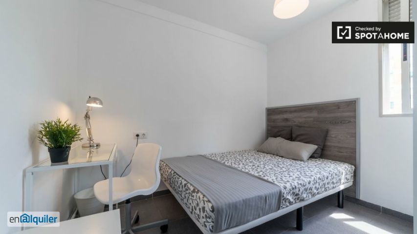 Hay habitaciones disponibles para alquilar en este moderno apartamento de 4 dormitorios en Carrer del Pintor Dalmau, Algirós. Esta propiedad de 100 m² ofrece una cocina totalmente equipada y una amplia sala de estar, equipada con comedor, sofá y televisión. El baño compartido está equipado con ducha y también hay una zona de lavandería independiente con lavadora. Situado en la zona de Algirós, esta propiedad se encuentra a menos de 20 minutos en autobús del corazón de Valencia. La Universidad Politécnica de Valencia está a solo 5 minutos a pie, por lo que es un lugar ideal para estudiantes. A poca distancia a pie hay una gran variedad de tiendas y restaurantes. El supermercado más cercano está a solo 2 minutos a pie.