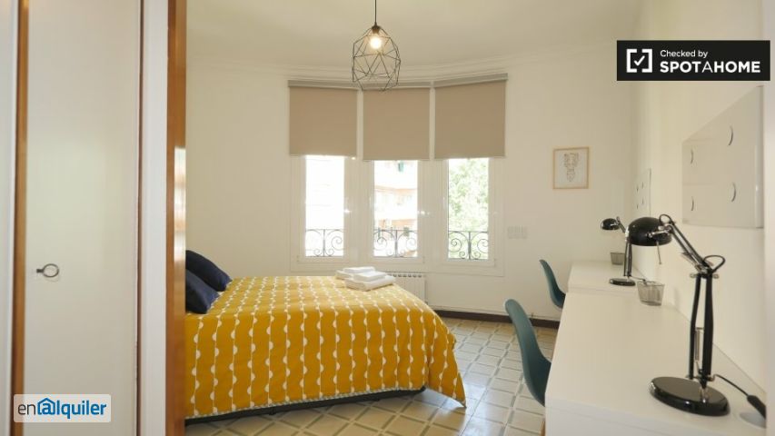 La mancha solar para compartir _porque vives para la luz_ ¿me gustará aquí? Depende. ¿buscas un espacio luminoso con algo de estilo? Entonces echa un vistazo a 1 de estas hermosas habitaciones. ¿de Verdad? Dime más Tendrás todo lo que necesitas en este encantador apartamento. Con muebles modernos en todas partes, aire acondicionado para mantenerte fresco y una lavadora y secadora para acelerar tus días de lavado, este apartamento sin duda tiene algo de estilo. Creemos que este es un gran lugar para un profesional o estudiante en movimiento que busca algo con sol y estilo. Sus 3 razones principales para vivir aquí: - Relájese en el aire acondicionado, fresco. - Nunca esperes tu turno para ir al baño, tendrás 2 en casa. - Explora el centro de la ciudad: vivirás en el corazón del centro de Barcelona. Guau. Pero necesitas saber esto - Hay 5 dormitorios en el apartamento, 1 de los cuales puede alojar a una pareja, eso es mucha gente en 1 apartamento. Ayúdame a decidirme Este es un bonito apartamento en el tercer piso, de 5 dormitorios, en el Paseo de Sant Joan, Barcelona. Es elegante, tiene 2 baños y está en el centro de la ciudad, todos los elementos de un fabuloso piso compartido. Es perfecto para profesionales, estudiantes o Erasmus.