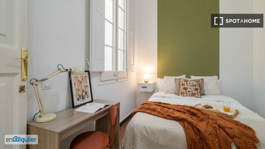 Se alquilan habitaciones en piso amueblado de 7 habitaciones en la calle Ample. La propiedad se encuentra en la 1ª planta de un edificio sin ascensor. La propiedad incluye cocina equipada, balcón y lavadora.