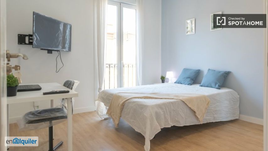 Se alquilan habitaciones en piso amueblado de 4 habitaciones en la c. Manuel Aleixandre. La propiedad está en el 4To piso. La propiedad incluye aire acondicionado, balcón, lavadora y lavavajillas.