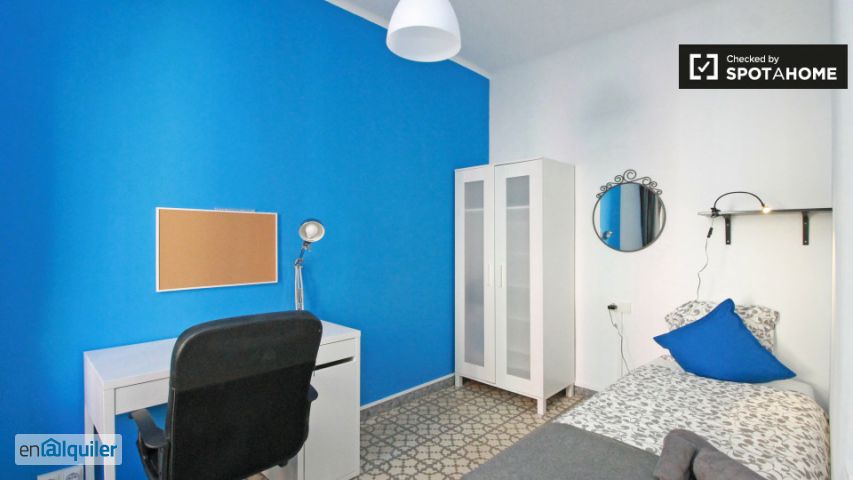 Las habitaciones están disponibles para alquilar en este apartamento de 4 dormitorios en la calle Nou de la Rambla en Poble Sec. El apartamento ha sido recientemente renovado y redecorado, y está en excelentes condiciones, con todos los nuevos muebles y accesorios. Las zonas comunes son cómodas, incluyendo una cocina bien equipada, y hay 1 baño para compartir entre 3 de las habitaciones, ya que el dormitorio 4 tiene su propio baño privado. Esta es una excelente zona de la ciudad en la que vivir; Cerca de las zonas centrales e históricas de el Raval y Barrí Gòtic, ya pocos pasos del puerto, donde encontrará el principal distrito de negocios. Desde la cercana estación de metro de Paral·lel, la Universitat de Barcelona está a sólo 2 paradas de distancia, y para conocer la ciudad desde arriba, sólo la cabeza de la cercana Montjuïc. Se tardará unos 5 minutos para llegar a la cima desde el apartamento (dependiendo de su nivel de condición física), y hay vistas increíbles de la ciudad desde allí.