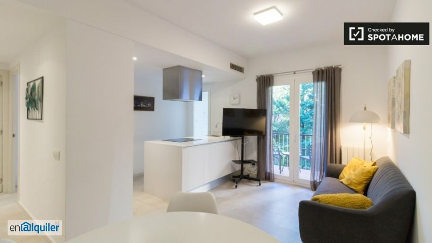 Adéntrese en este encantador apartamento de 2 habitaciones situado en Sant Gervasi Galvany, Barcelona. Esta propiedad, completamente amueblada, cuenta con calefacción de gas natural, aire acondicionado y una cocina equipada con electrodomésticos modernos, como lavavajillas, horno y lavadora. Exclusivo de Spotahome, este apartamento ha sido revisado personalmente para garantizar una experiencia de alquiler fiable. Todos los gastos (agua, luz, gas y wifi) están incluidos para su comodidad. Ubicado en el vibrante barrio de Sant Gervasi Galvany, este apartamento está rodeado de diversos restaurantes como Bocata Factory, lo Sfizio y Kibo Taberna. Además, la Academia md está muy cerca, lo que lo hace ideal para estudiantes o profesionales. A poca distancia se encuentra la famosa Casa Vicens, un auténtico deleite cultural y arquitectónico.