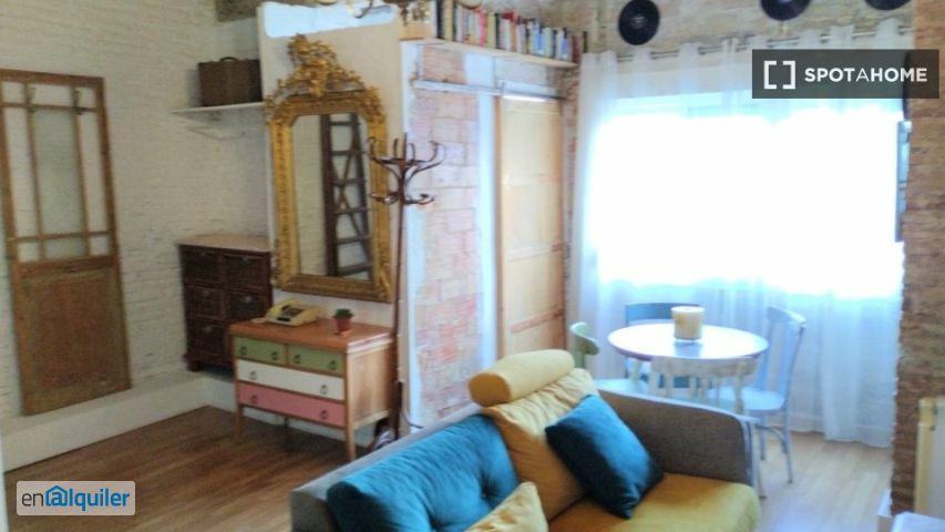 Se alquila estudio amueblado en c de Pelai. La vivienda se encuentra en la 3ª planta de un edificio con ascensor. La propiedad incluye tv y sofá cama.