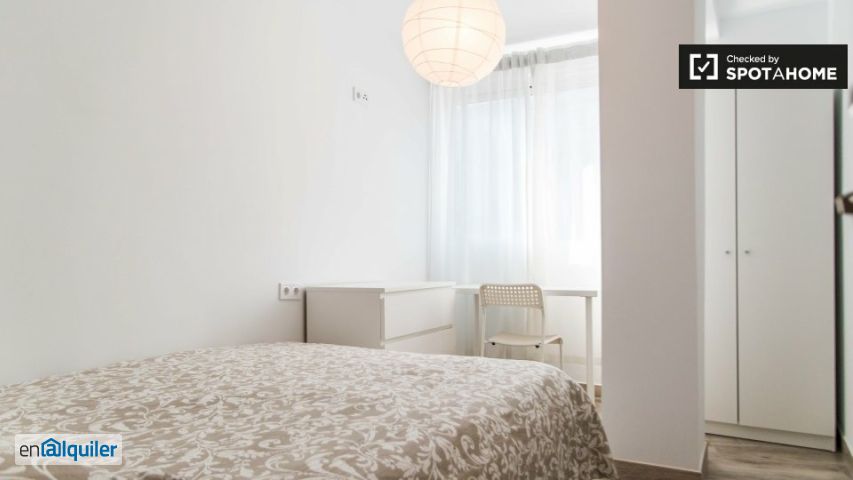 El lugar para estudiantes con estilo _porque vas a estudiar con estilo_ ¿me gustará aquí? Tal vez. ¿eres un estudiante en busca de un hogar moderno en el centro de Valencia? Entonces echa un vistazo a este gran apartamento. ¿de Verdad? Dime más Tendrás todo lo que necesitas en este encantador apartamento. Con muebles modernos, mucha luz natural y una excelente ubicación cerca de la playa en el centro de Valencia, esta casa es bonita y práctica. Creemos que este es un lugar ideal para un estudiante de moda y en movimiento que busca un hogar con otros estudiantes. Sus 3 razones principales para vivir aquí: - Admira la decoración elegante, tan moderna. - Nunca espere su turno para ir al baño— el dormitorio 4 tiene baño privado. - Termine su ropa en un tiempo récord, tendrá una lavadora y secadora para usar. Pero necesitas saber esto - el apartamento no tiene aire acondicionado, tendrás que ir a la playa para mantenerte fresco en verano. - Las habitaciones aquí solo están disponibles para alquilarlas a estudiantes, lo sentimos, profesionales. Dame esto directamente Este es un encantador apartamento de 4 dormitorios en Carrer del Pintor Ferrer Calatayud, Valencia. Es moderno, es brillante y está cerca de la playa. ¿qué es no amar? La ubicación es excelente: el apartamento está a solo 15 minutos a pie de la playa, y cerca encontrará todos los restaurantes, cafés, bares de tapas y tiendas que pueda desear. Excelente.