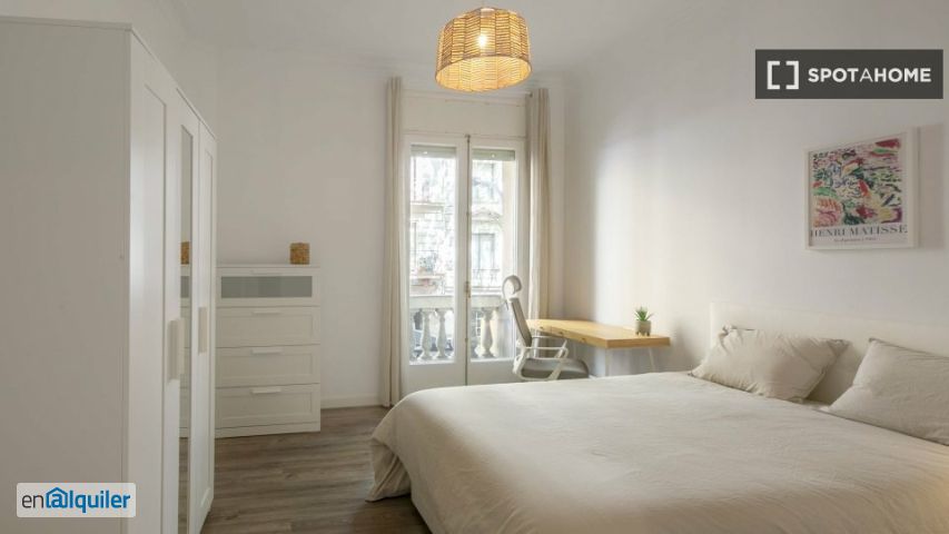 La cocina está totalmente equipada con horno, microondas, vitrocerámica, lavavajillas, lavadora y secadora. También cuenta con menaje de cocina. En el salón, encontrarás una gran mesa donde disfrutar de alegres comidas con tus compañeros o bien trabajar desde casa. También cuenta con un área lounge para relajarse con dos cómodos sofás y una tv panorámica. ¿qué incluye el alquiler? -habitación privada -acceso y usufructo de áreas comunes - Sábanas y toallas -gastos de suministro (agua, luz, gas, internet alta velocidad, limpieza semanal de zonas comunes) -atención al cliente multilingüe y mantenimiento en caso de averías -servicio de portería de lunes a viernes -finca con ascensor